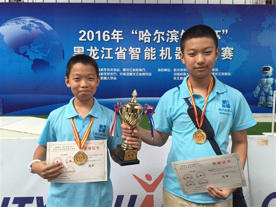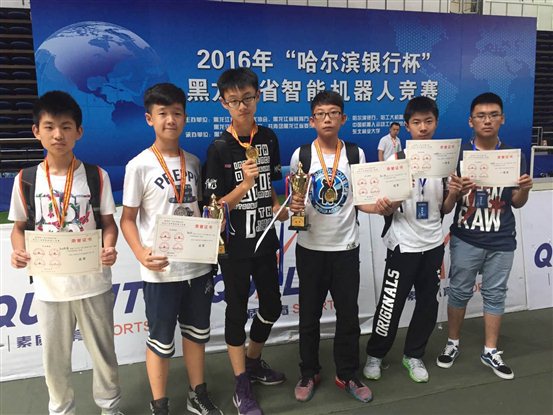 7月15日,由黑龙江省科协、省教育厅、省科技厅、团省委联合主办,省机器人学会承办的2016年“哈尔滨银行杯”黑龙江省智能机器人竞赛在东北林业大学体育馆开幕,来自全省10个市(地)的831支参赛队伍,共1260余名学生参赛。我校由小学部、初中部、国际部同学组成的代表队,在国兴、魏英达、章晨曦三位老师的带领下大获全胜,勇夺小学组、初中组、高中组三项冠军,以及两项亚军、一项季军、六项一等奖、多项二等奖的优异成绩,再展哈美加外校科技创新教育特色!