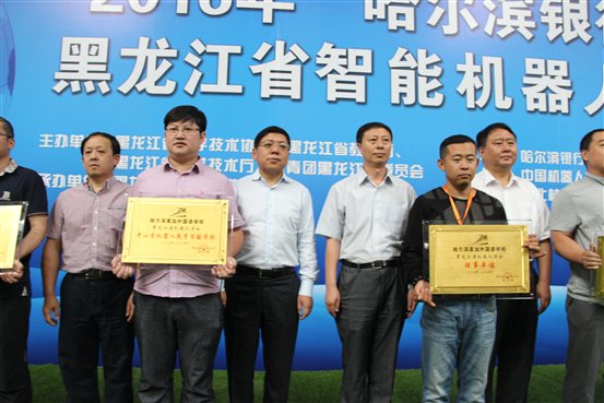 同时鉴于我校在机器人教育方面长期以来的突出贡献和卓越成绩,省领导为我校授牌,授予我校“中小学机器人教育实验基地”和“黑龙江省机器人学会理事单位”;我校国兴、魏英达、章晨曦三位教师均被评为“优秀指导教师”;我校被评为“优秀组织单位”。