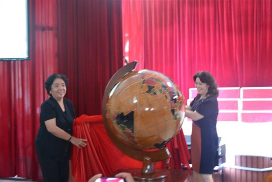 今天,他们把“地球”送给母校。当他们的小手划过地球上的每一寸土地时,他们兴奋的说,他们和他们的中国梦在这里、在那里……