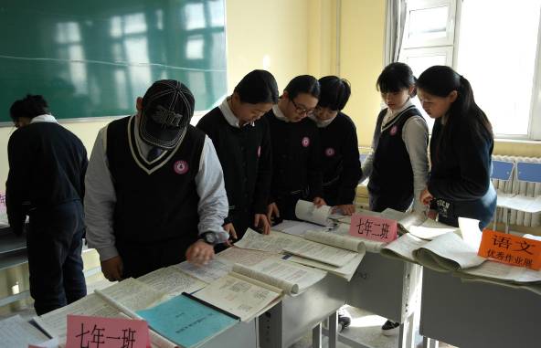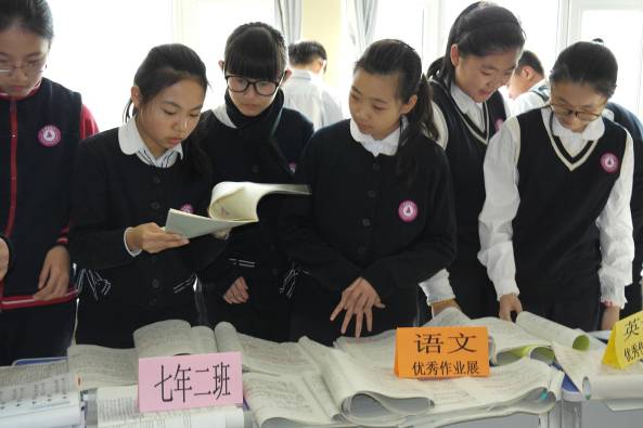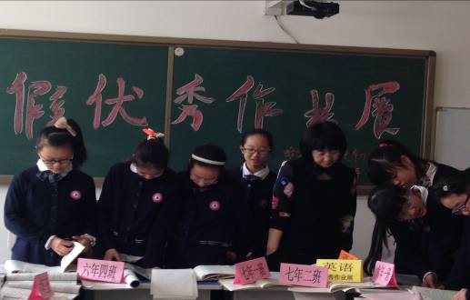 初中部认真贯彻张韬校长在教职工大会讲话精神,把教育教学质量作为初中部中心工作。强化教师的教学常规,加强学生的学风建设。2015年3月11日,初中部教导处组织了寒假优秀作业展活动,展示学科有语文、数学、英语、科学,分别展示有练习册、作业卷、钢楷、作文等。